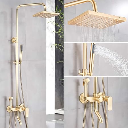 Damo Guyan Shower Set Brushed Gold Shower Set Bathroom Tub Shower Mixer Tap Rainfall Bath Shower Faucet Brass Bidet Head In Wall Rain Shower Tap Shower Faucet Type B Amazon Co Uk Kitchen Home